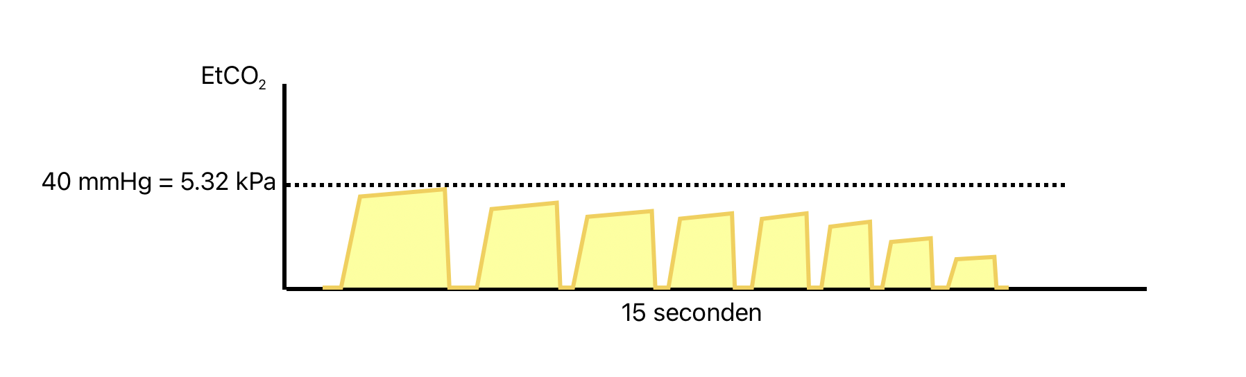 Het vroeg gebruiken van capnografie en beoordelen van het capnogram geeft waardevolle informatie over ventilatie en cardiac output. Het is essentieel voor beoordeling van (kap-)beademing, bevestiging van correcte tubepositie, detectie van spontane ademhaling en het signaleren van veranderingen in weefselperfusie. Sluit daarom de capnometer aan zodra er wordt gestart met beademen en niet pas na plaatsen van een larynxmasker of tube.