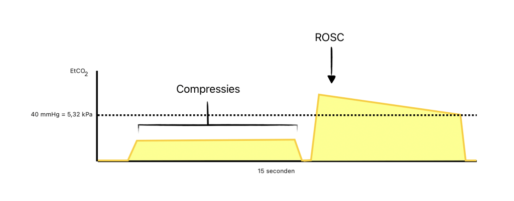 Wanneer de resuscitatie en reanimatie succesvol zijn en de patiënt weer spontane circulatie krijgt, zal er een significante toename in de CO2-waarden op het capnogram te zien zijn. Dit is een indicatie dat de normale bloedstroom en gasuitwisseling in de longen zijn hervat.